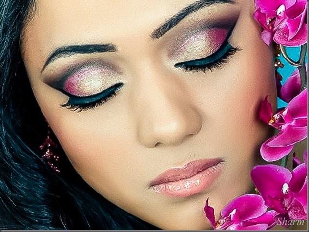 Collection of photos of beautiful girls showing bright, Arabic, Oriental eye makeup.